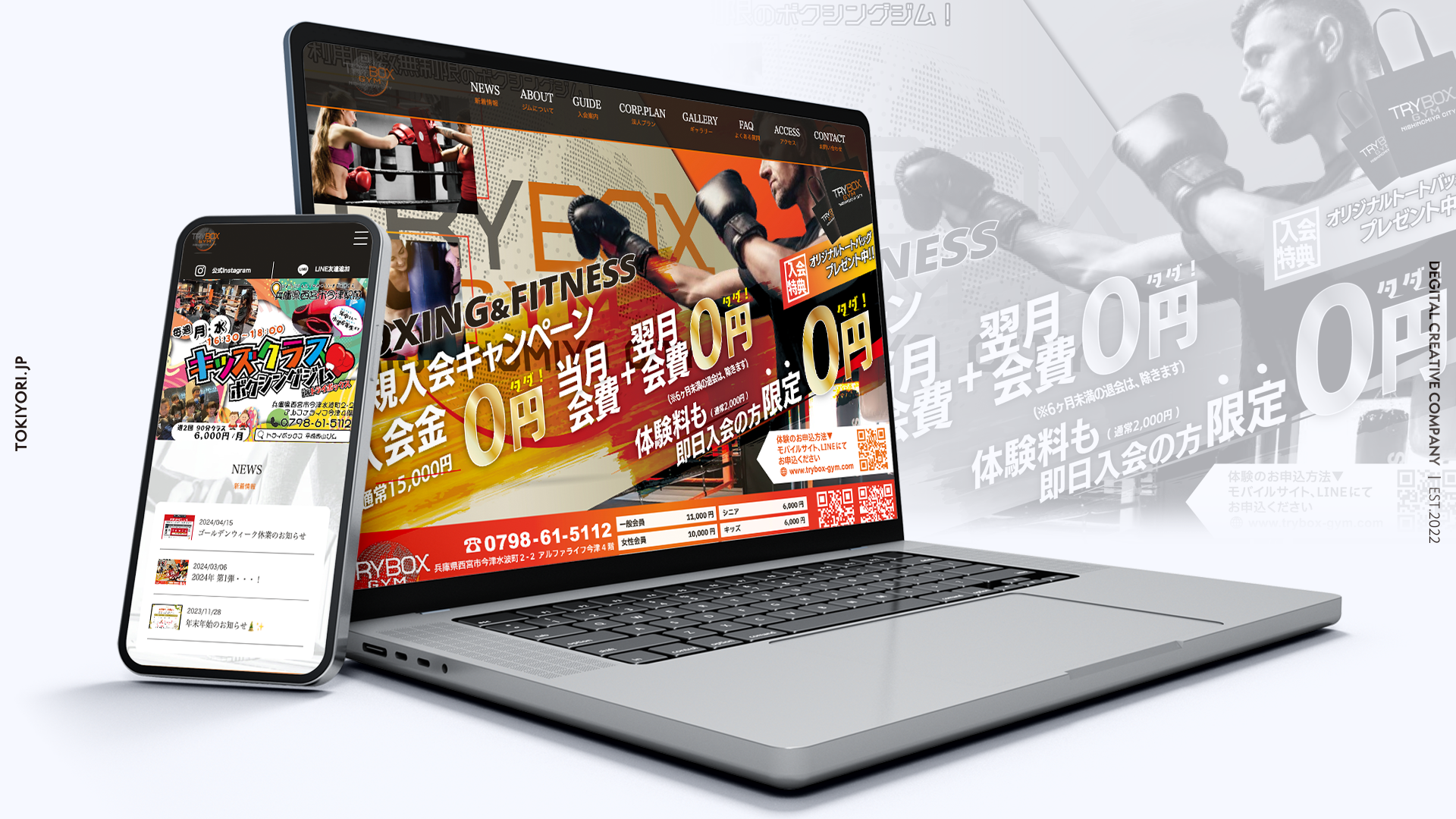 トライボックスジム様のホームページは、来訪者が使いやすいと感じるデザインを目指し、見た目の魅力と簡単な操作性を重視しました。